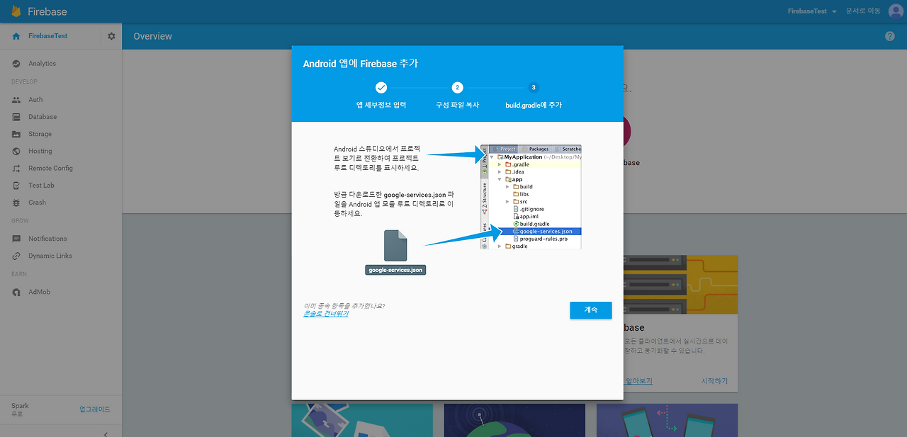 다운로드한 google-service.json 파일을 Android 앱 모듈 루트 디렉터리로 이동하세요.