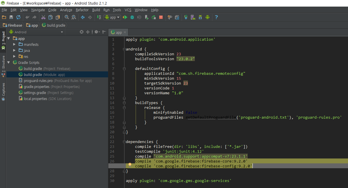 compile 'com.google.firebase:firebase-config:9.2.0'