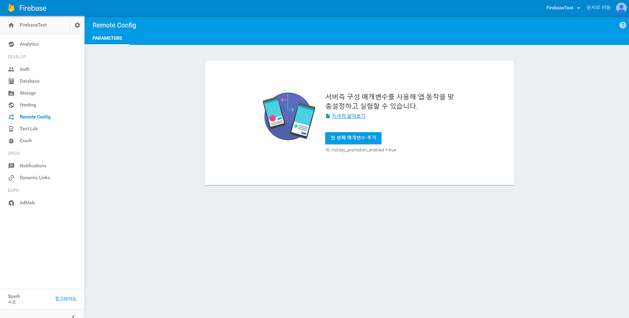 (Firebase Remote Config는 app을 업데이트하기 위한 별도의 다운로드 없이 동작이나 모양을 바꿀 수 있는 클라우드 서비스입니다.)