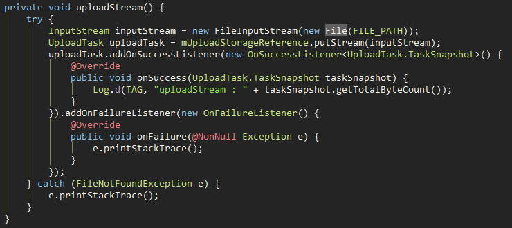 putStream() 함수는 InputStream을 가져와 업로드를 관리하고 상태를 관찰하는 UploadTask를 반환합니다.