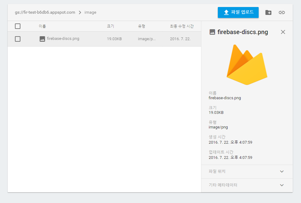 파일들은 Firebase Storage bucket에 저장됩니다.