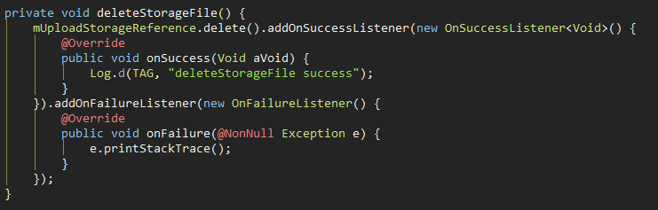 mUploadStorageReference.delete().addOnSuccessListener(new OnSuccessListener<Void>() {