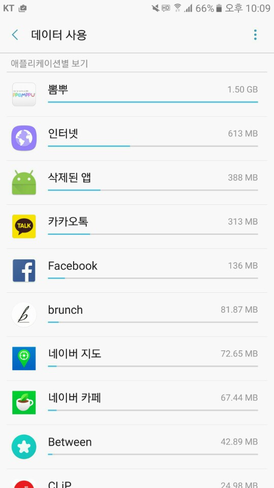 "설정-연결-데이터 사용"을 통해 앱별로 사용한 데이터를 확인할 수 있습니다.