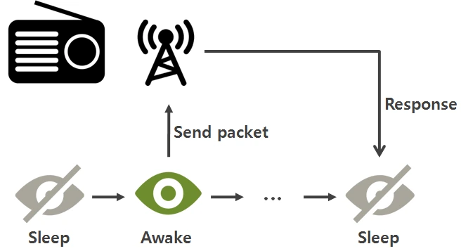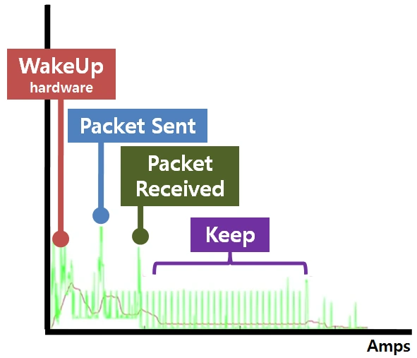이 뿐만 아니라 데이터 패킷을 전송한 후에도 혹시 모를 수신을 대비해 20초에서 60초 동안 켜진 채로 대기하기 때문에 더더욱 배터리를 소모하게 됩니다.