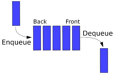 한쪽 끝에서만 삽입, 삭제는 반대쪽으로만 가능한, 나중에 집어넣은 데이터가 먼저 나오는 스택과는 반대되는 개념이다.