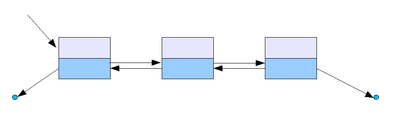 이중 연결 리스트 - 각 노드는 이전 노드와 다음 노드를 가리키는 참조값으로 구성된다. 처음 노드의 이전 노드와 마지막 노드의 다음 노드는 없다.