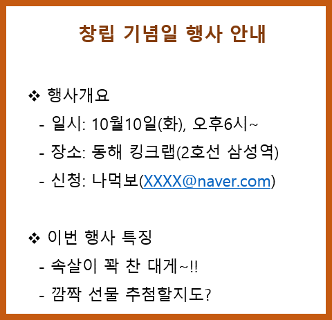 실전 슬라이드에서는 7개로 항목을 정리하는 것도 상당히 부담스럽다.