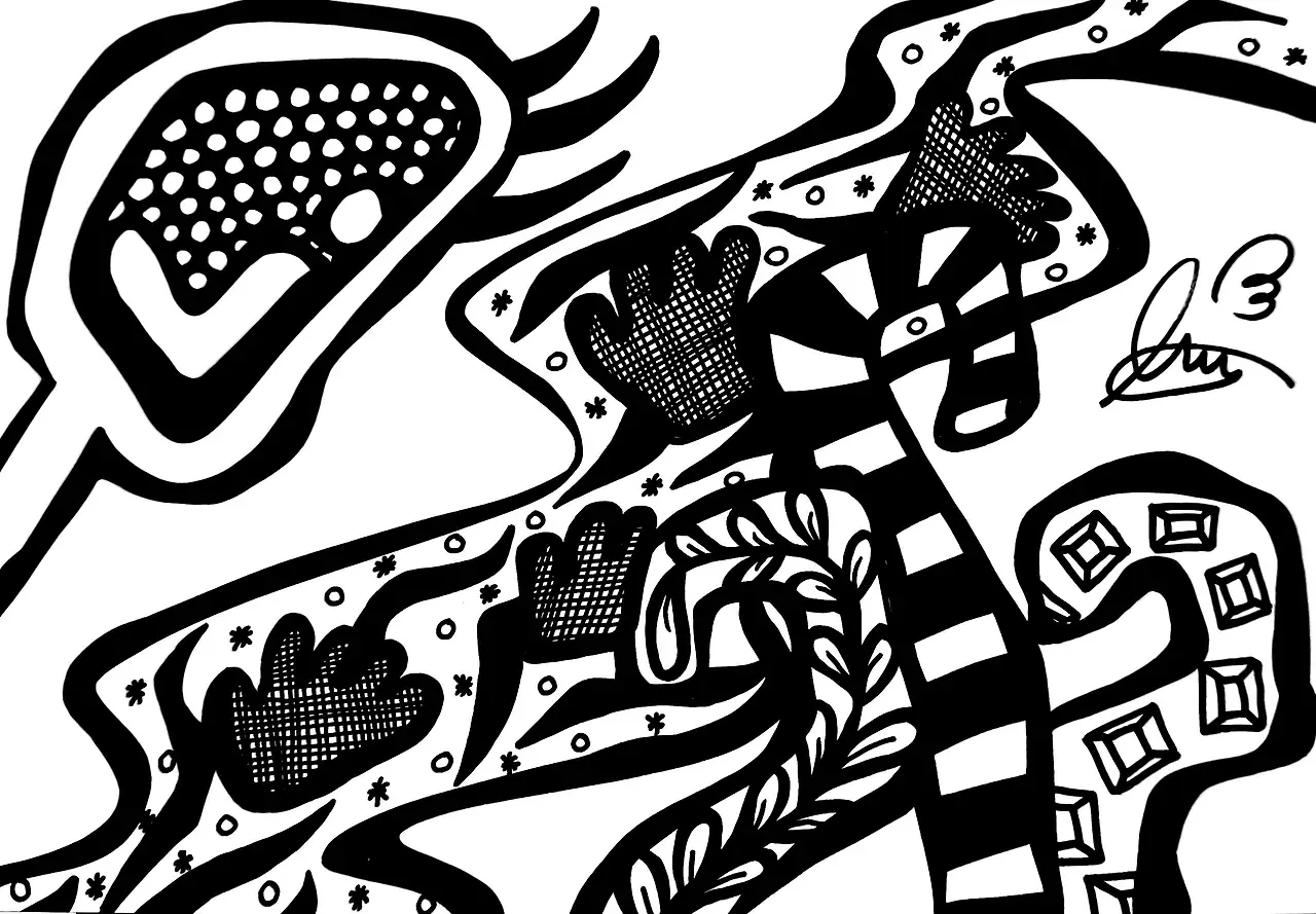 그러나 물가 옆 식물들은 모릅니다. 물 위에 손자국이 있는지 모르는 눈치인지 아니면 왜 손자국이 있는지 무엇이든 간에 그들은 모르겠다는 듯이 물음표 모양으로 피어나 있습니다. 그리고 그 물음표는 독자에게 향하고 있습니다.