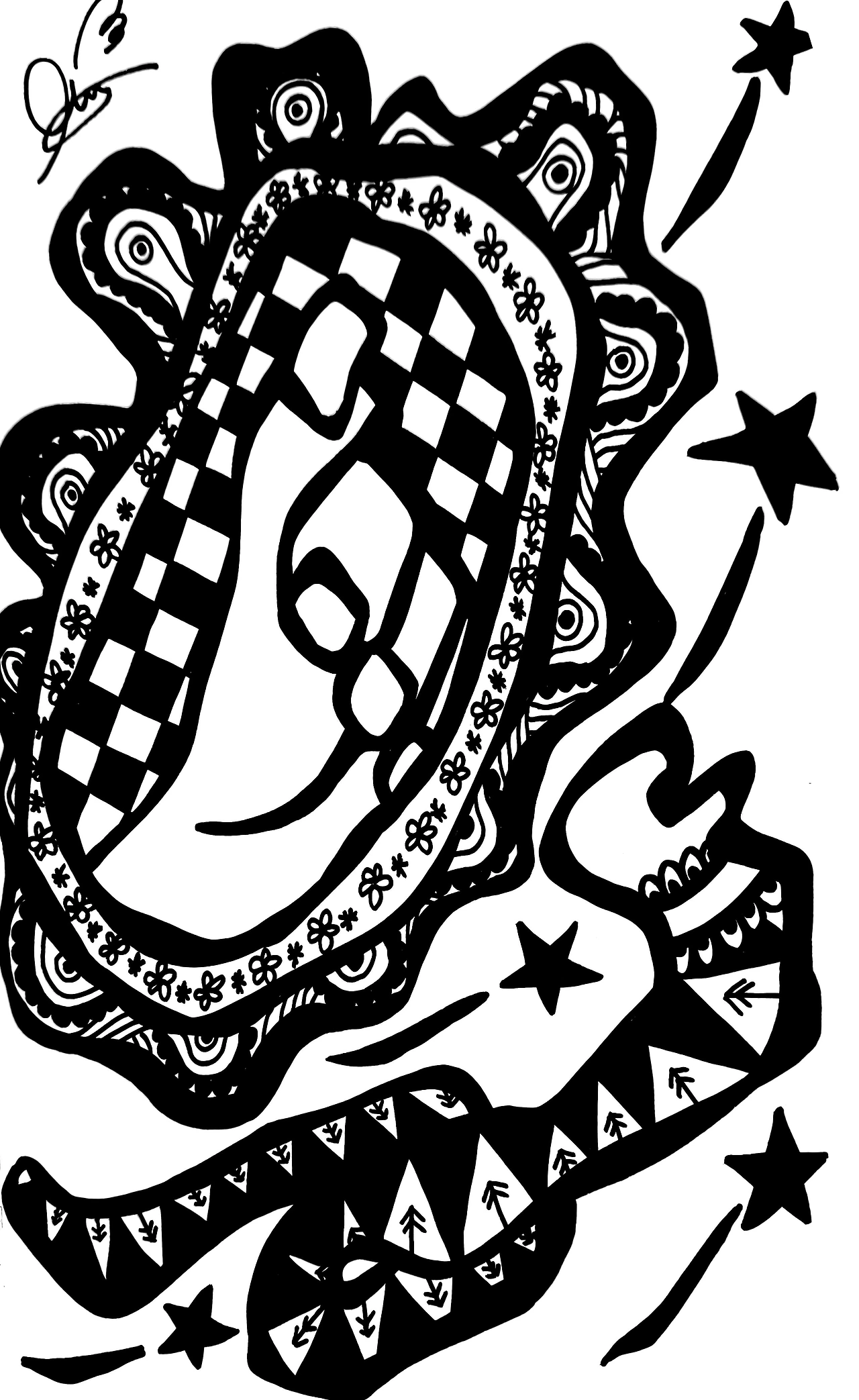 거울 속 손가락은 주인공에게 어딘가를 가리키고 있습니다. 그리고 그곳에는 이미 별들이 반짝이고 있지요. 마치 주인공과 함께할 준비를 끝마친 것 같아 보입니다.