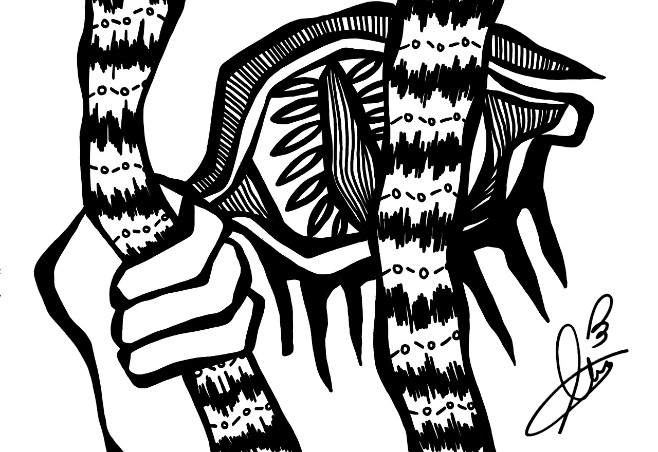 철장에 갇힌 존재는 스스로 나올 수 없어 도움을 요청합니다. 화자는 노려보는 것이 아니라 울고 있을 뿐이라고 말하며, 자신의 상태에 대해 다시 설명하는 절박한 모습을 보이고 있지요. 탈출하고 싶지만 쉽지 않고, 그 사이에서 자신을 바라보며 슬픔을 느낍니다. 어떠한 힘에 의한 갇힘 그리고 오해, 그리고 그 속에서 벗어나고 싶지만 자신의 힘을 잃어버힌 상태에서 생존을 위해 누군가를 찾는 절박한 감정을 남기고 작품은 끝이 납니다.