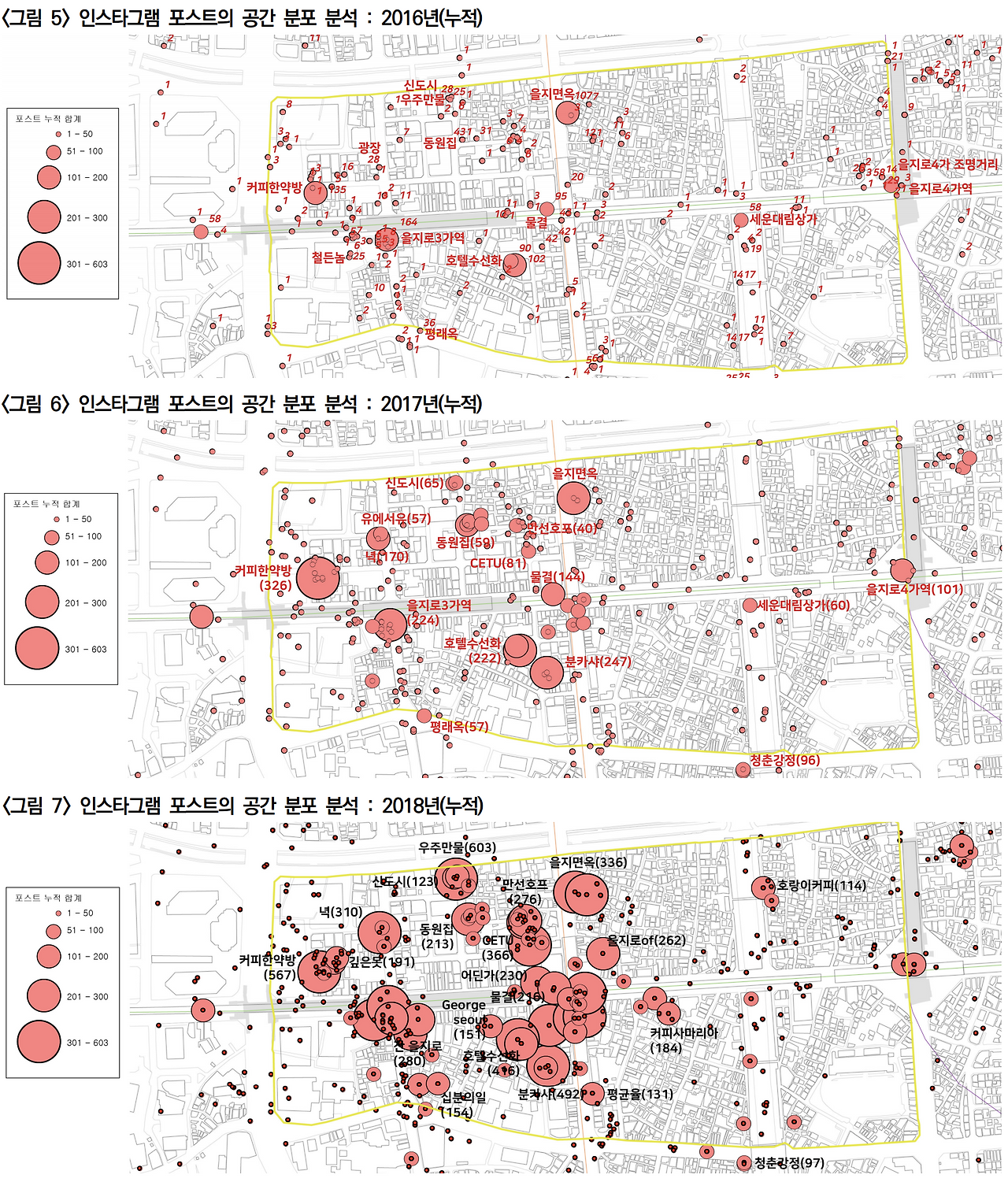 김은택·김정빈·금경조, 인스타그램 위치정보 데이터를 이용한 을지로 3·4가 지역 활성화의 실증분석, 서울도시연구 제20권 제2호 2019. 6., pp. 19~35