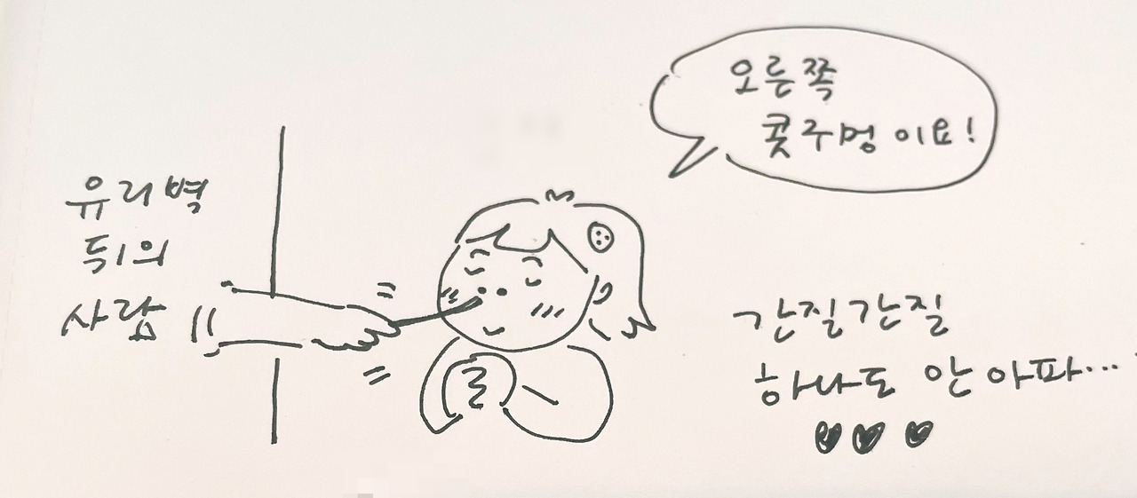 코 세척이 익숙치 않아 오른쪽 콧구멍만 열심히 세척을 했기에, 오늘쪽 콧구멍으로 검사해달라고 함.