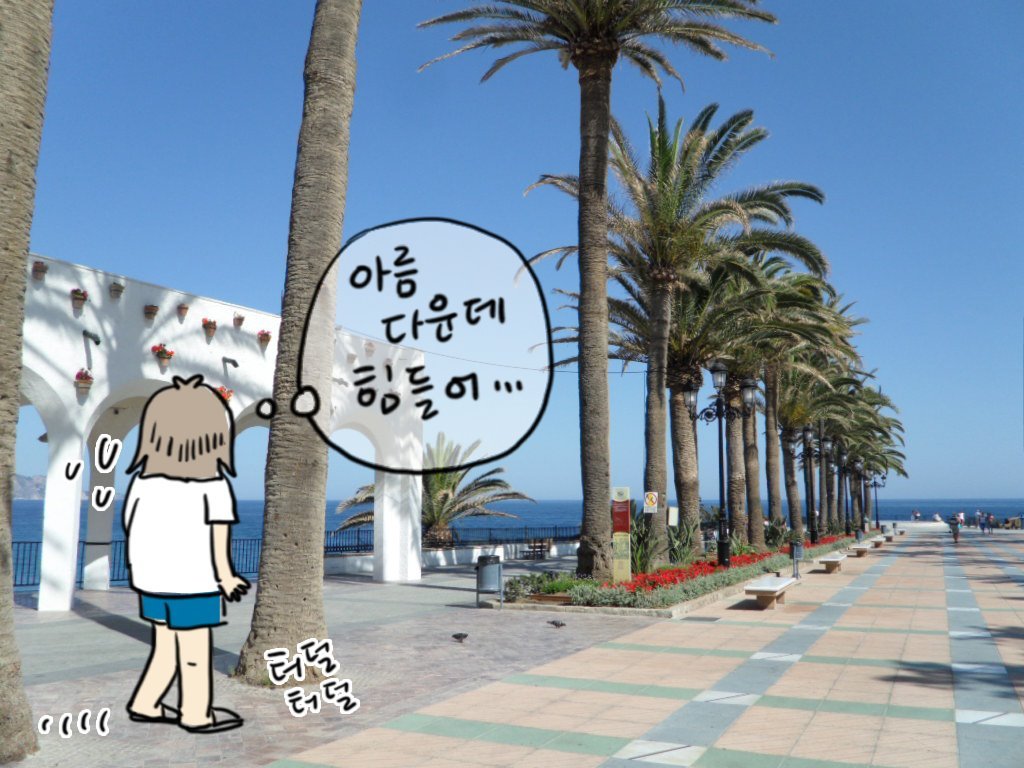 네르하의 바다, 햇살, 사람들, 그 모든 아름다움을 다 합쳐놓아도 이 호텔만큼 아름답지는 않을 것 같았다. 이 곳에 묵으면 예산 초과였지만 사람이 뭐, 계획대로만 살 수는 없지 않나. 오늘 숙박 예산을 초과하면 내일 예산을 아끼면 된다. 그래도 예산을 초과한다면, 그래, 초과하면 된다!