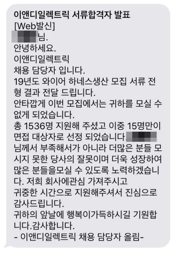 이 '정성스러운 탈락 문자'를 보낸 곳은 이앤디일렉트릭!!