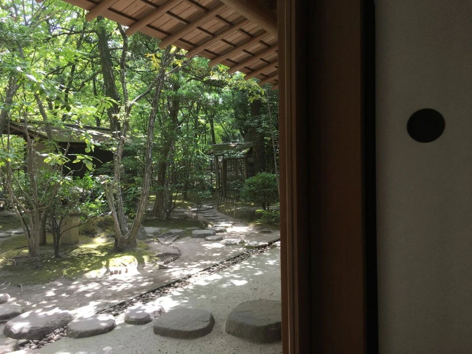 고즈넉한 신사 '라쿠스이엔'. 차를 곁들이며 정원의 풍경을 지그시 바라보기에 좋다.