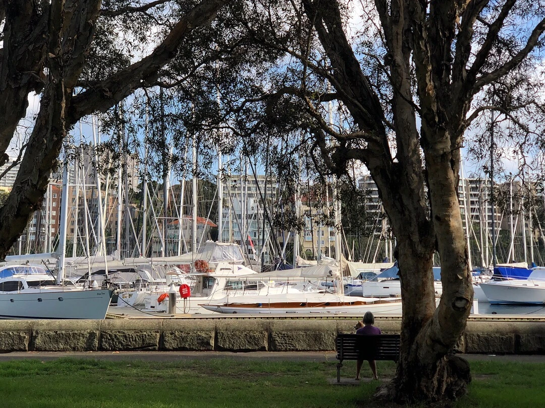 시드니 여행 중 머물게 된 에어비엔비는 킹스크로스역 부근이었다. 바다를 볼 수 있는 곳 근처로 찾다 보니 킹스크로스 근처에 머물게 되었다. 에어비엔비 예약 후 가장 기대했던 곳은 공원이었다. 이름은 Rushcutters Bay Park. 알고 보니 이곳은 요트가 정박해있는 곳이었다. 요트 덕분에 이국적인 풍경을 선사하던 곳. 아침 일찍 공원에서 운동하던 현지인들을 바라보며 에어비엔비에 머무는 동안 공원에서 꼭 운동해야겠다! 다짐했었다. 시크한 운동복을 입고, 선글라스를 끼고, 공원엔 나뿐인 듯 운동하는 현지인들이 너무 멋져 보였기 때문이다. 시크한 운동복을 가져오지 못해 후회스러웠다는. :)