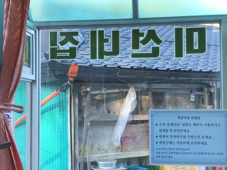 심곡항은 정동 바다부채길의 출발지이기도 하다. 정동 바다부채길에 가려 했지만 거센 파도로 인해 출입을 금지하고 있었다. 바다 부채길에 방문할 계획이 있다면 미리 출입 여부를 확인할 것을 추천한다. 심곡항 주변엔 2개의 식당이 자리해있다. 강릉의 대표적인 매운탕 종류인 '망치 매운탕'을 판매하는 식당과 감자옹심이가 주력인 '미선이네'. 강원도 음식이 궁금했던 우리는 '미선이네'에서 늦은 점심을 먹었다.