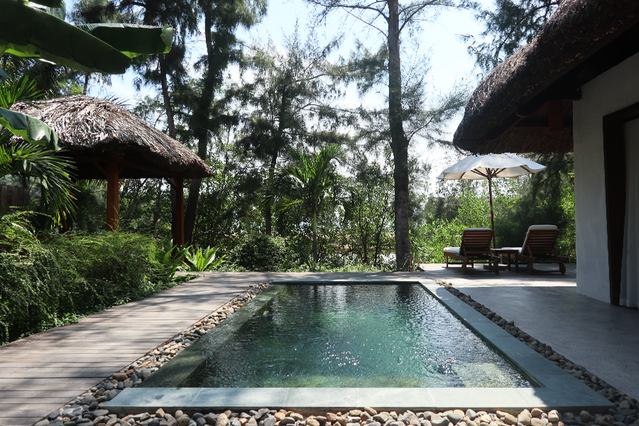 대문을 열고 들어서면 초록 초록한 나무들이 우거진 정원과 개별 수영장, 썬베드에 누워있으면 해변이 눈 앞에 들어오는 자연친화적 리조트를 만나실 수 있습니다. 숙소 안은 고급스러운 침실과 욕실, 발코니로 이루어졌으며 어메니티 또한 완벽 그 자체랍니다.