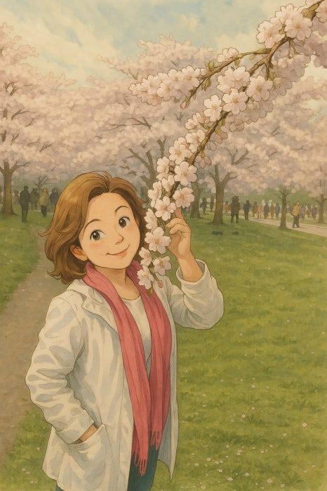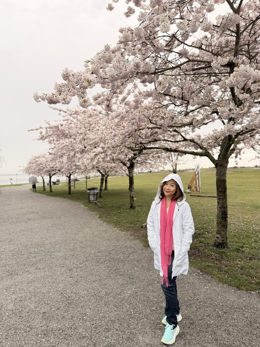 왼쪽 사진, 2024년에 왔을 때는 파란 하늘이 만개한 벚꽃을 더욱 돋보이게 했다.