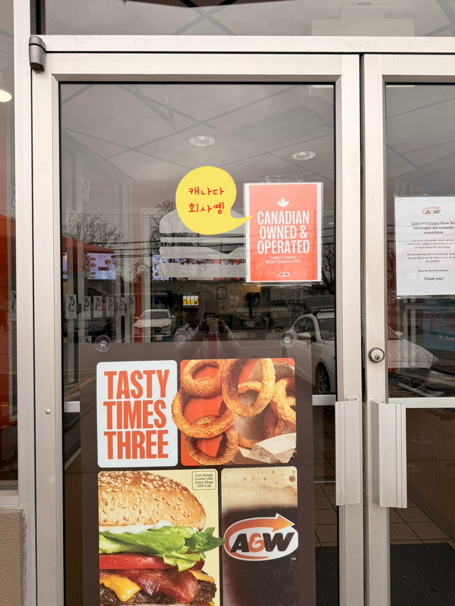 여기 A&W 도 Canadian 회사임을 알리는 안내문이 붙어있다.