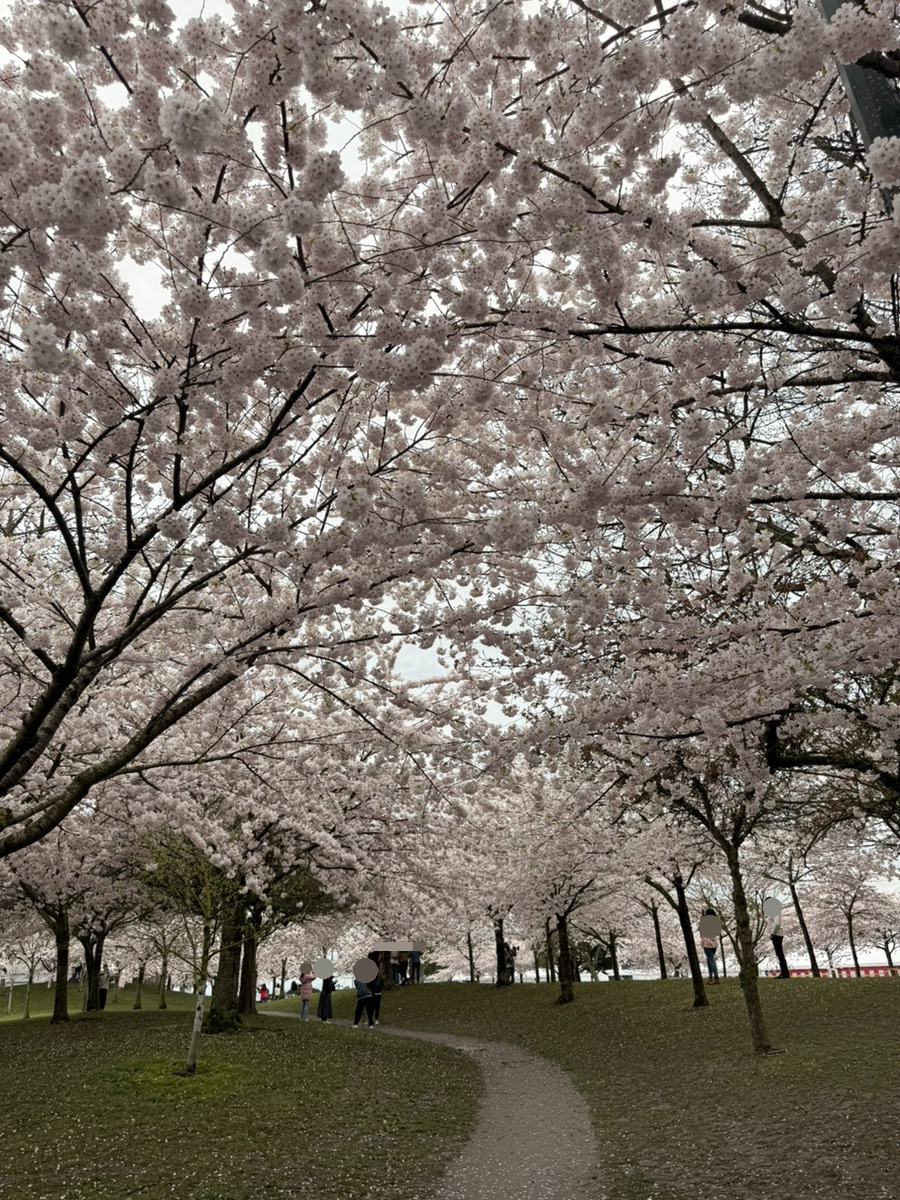 9시 즈음에 도착한 공원은 흐린 하늘 아래서 만개한 꽃들이 향기를 뿌리고 있었고 사람들은 오늘 열릴 벚꽃 축제를 위해 준비 중이었다.