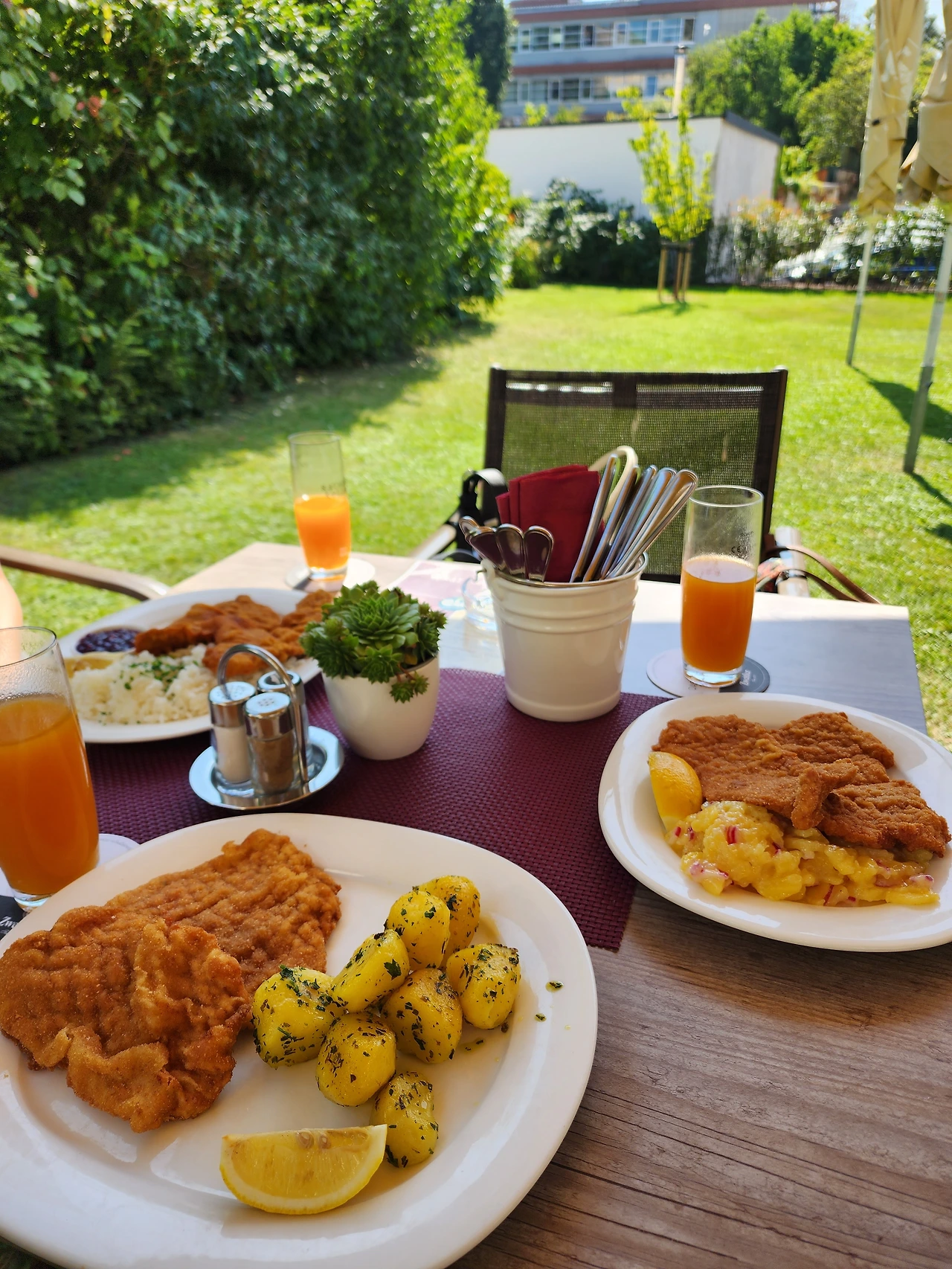 대부분 관광객들은 빈에서 슈니첼을 먹는다. 그러나 우리는 아파트호텔에서 밥을 해 먹느라 빈에서 외식을 한 번도 안 했다. 슈니첼은 처음이라 비교 대상이 없어서 그저 맛있기만 했지만, 누군가는 구* 리뷰에 이렇게 써 놓았다. 자기는 슈니첼 좀 먹어봤는데, 이 집 음식이 인생 슈니첼이었다고. 접시에 있는 레몬 조각을 듬뿍 짜서 슈니첼에 뿌렸는데도 다 먹을 때까지 튀김이 바삭했으니 맛집 맞다. 거기다 양은 또 얼마나 많은지, 나는 1/3만 먹고도 배가 불렀다.