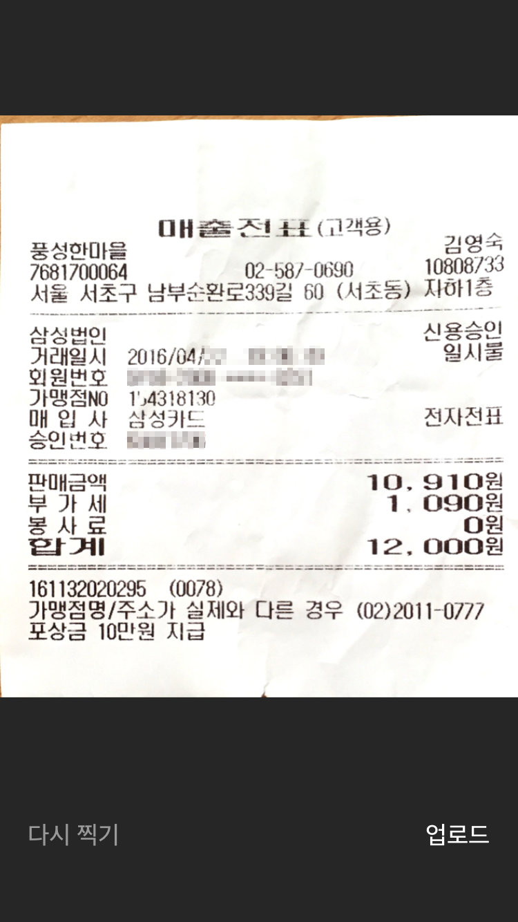 영수증 풀 바르지 않으면 법에 걸리나요?