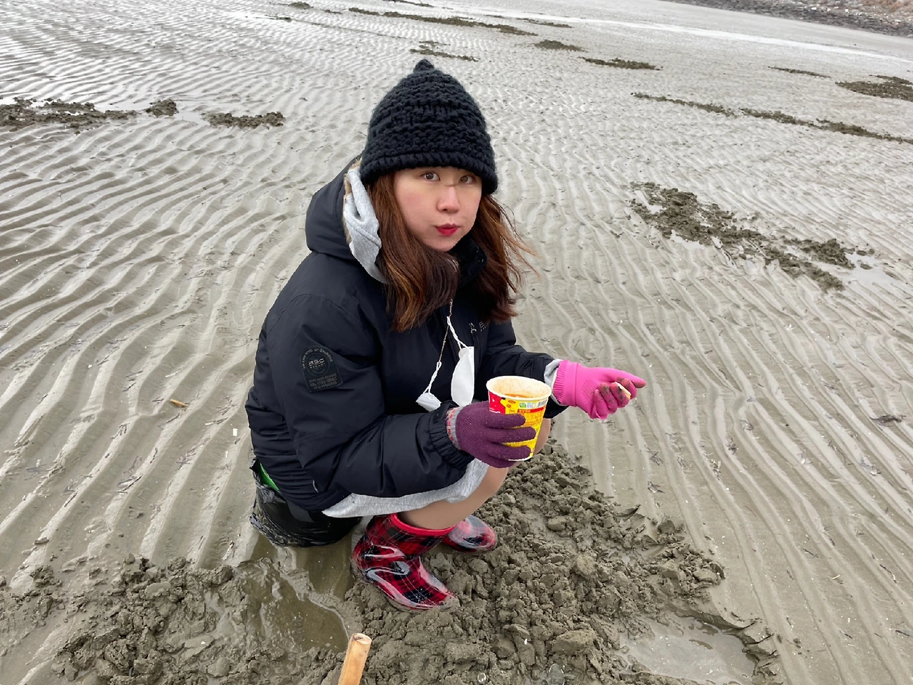 늘 먹고있는 임산부. 임신 후기로 진입하며 시부모님께서 기획해주신 갯벌 체험중에도, 조개 캐는 남편 옆에서 열심히 컵라면을 먹고있다 :)