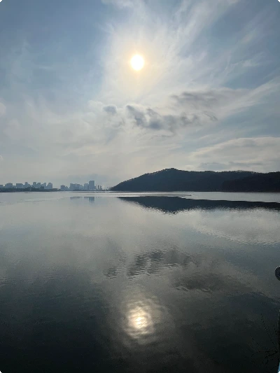 호수에 반사된 해를 보니 켜켜이 쌓이는 쓸데없는 내 감정처럼 일그러져 보인다. 이런 쓸데없는 감정을 싹싹 모아 몽땅 태우고 싶다.