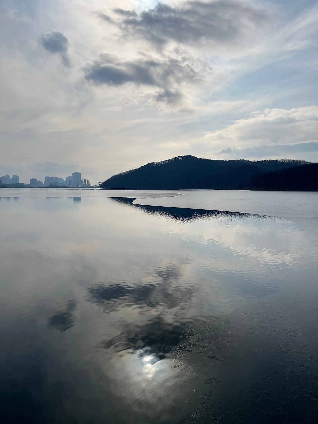 겨울 같지 않은 날씨. 이런 날은 하루종일 걸어도 괜찮을 것 같다. 금방 봄이 올 것 같은 기분에 사로잡혀 마음이 살랑거렸다. 호수의 반은 얼어있고 반은 잔잔하게 햇빛을 반사하며 흐르고 있다.