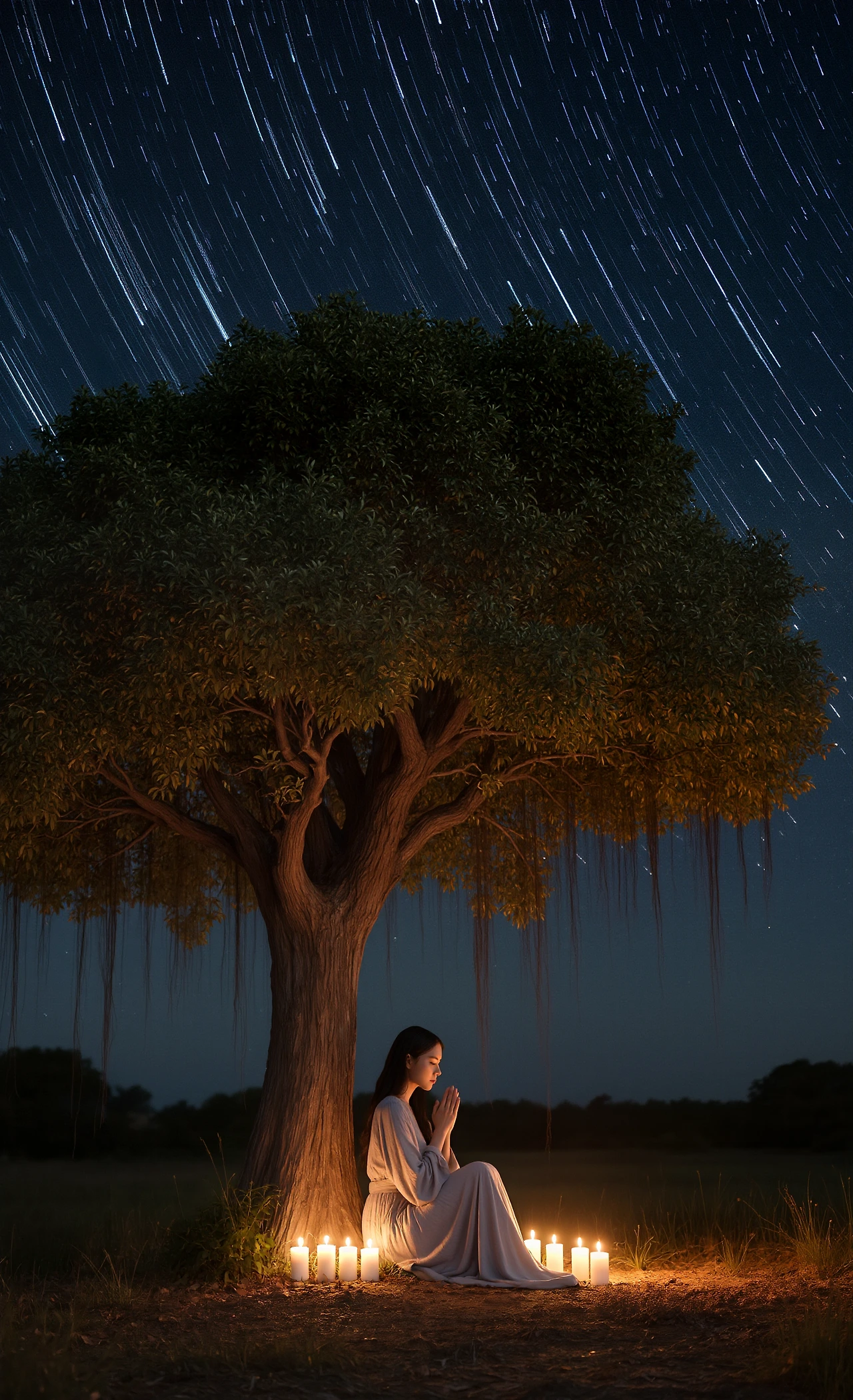 사람들은 어두운 밤 밀초를 켜고 기념을 하러 거대한 녹나무에 찾아든다. 이미 하늘나라에 간 가족이 남긴 유언을 전달받기 위해 영험한 기운의 녹나무를 찾는 것이다.