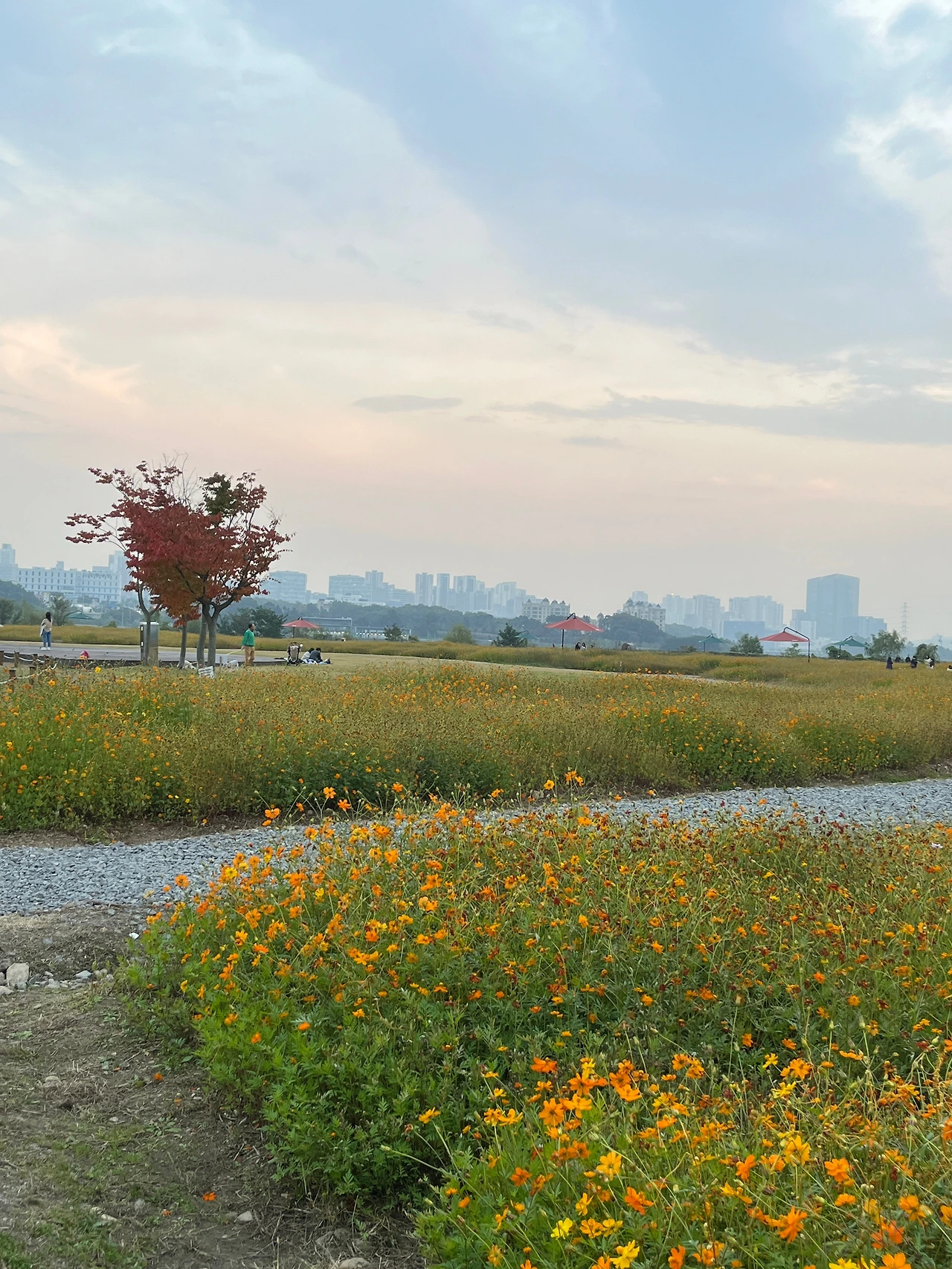 일주일 전에 가봤던 공원을 가봤다. 멀리서 보면 노랗기만 한 것이 뭘까? 궁금해서 다가간 곳은 코스모스 군락지였다. 언제 저렇게 꽃을 화려하게 피웠는지 멈춰 서서 한없이 바라보았었는데.