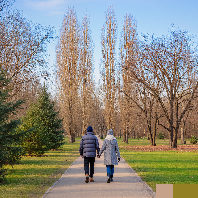 내친김에 아버지 팔을 붙들고 공원으로 향했어. 따뜻하게 무장하고 천천히 더듬더듬 길을 걸었지.