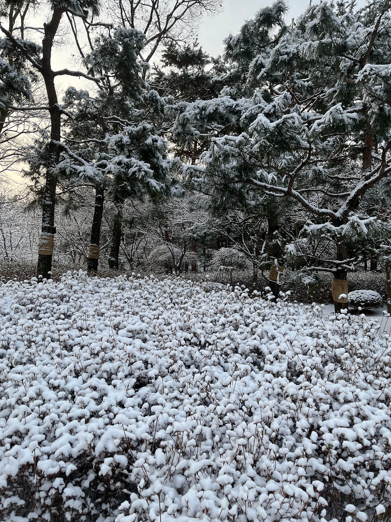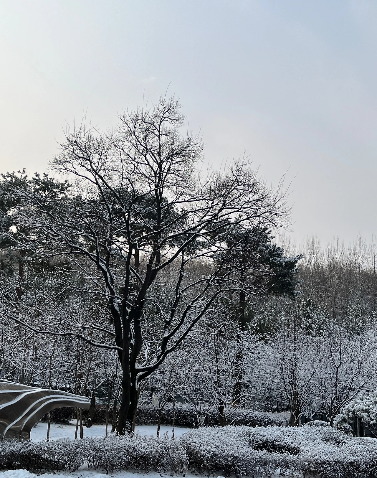 소복하게 눈을 이고 있는 저 잎새들이 황홀하다. 멀리 보이는 나무가 하얗게 덮여 있는 모습도 근사하다. 온통 하얀빛.