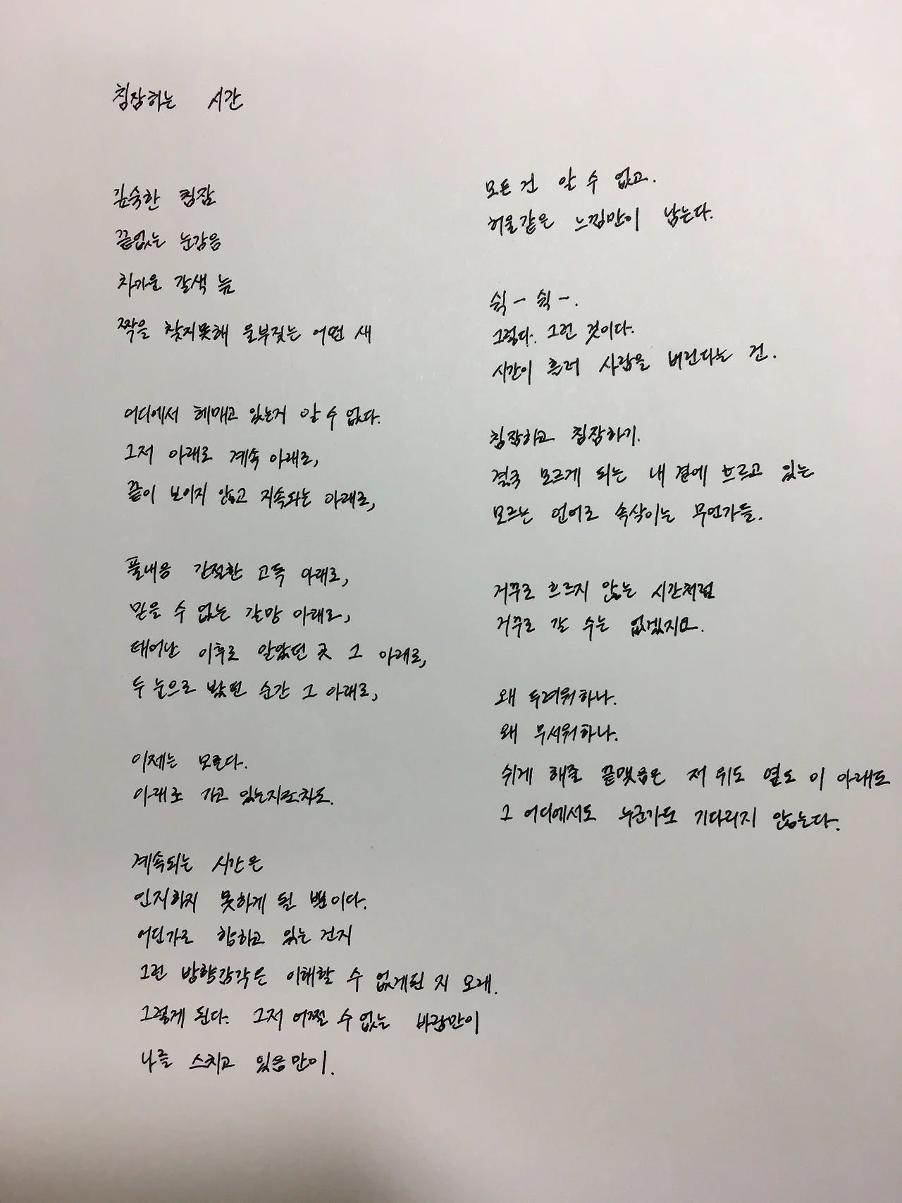쉬게 해줄 끝맺음은 저 위도 옆도 이 아래도