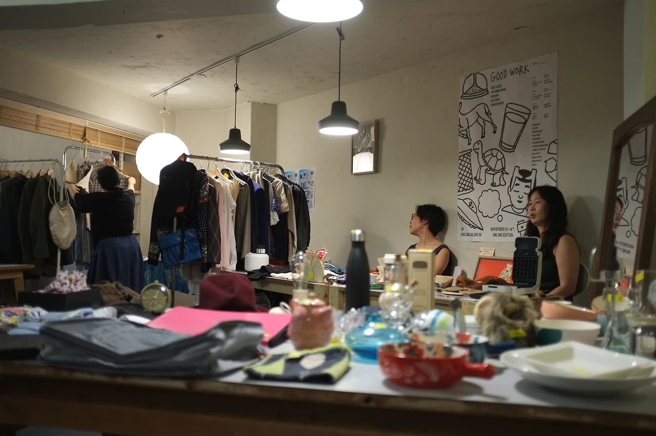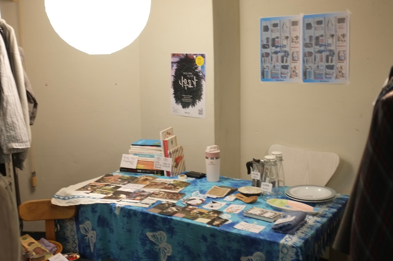 비우장 당일 장꾼들이 삼삼오오 모였다. 각자 취향이 보이는 옷, 가방, 그릇과 한때 취미였을 것들, 팔기 모호해 무료로 내놓은 갖은 물건들, 내가 가져온 것과 크게 다르지 않고 나의 마음과 크게 다르지 않고 짐을 비웠을 사람들. 동네 사람들이 기부해 준 물건도 책상을 가득 매웠다. 이 물건들의 수익금은 한 시민단체에 기부될 것이었다. 수많은 물건 더미에서 조만간 사야지 싶었던 딱 원하는 모양의 휴대폰 보조배터리를 발견했다. 내가 가지고 나간 모카포트가 필요했던 분이 나에게 필요한 것을 물어본 덕분에 역시 사려고 벼르고 있던 검정가방을 얻을 수 있었다. 나에겐 줄 수 있는 모든 이야기를 다 전해준 책이 누군가에게 새로운 이야기로 다가오는 것에 기쁨을 느꼈다. 비우장을 무사히 마쳤다.