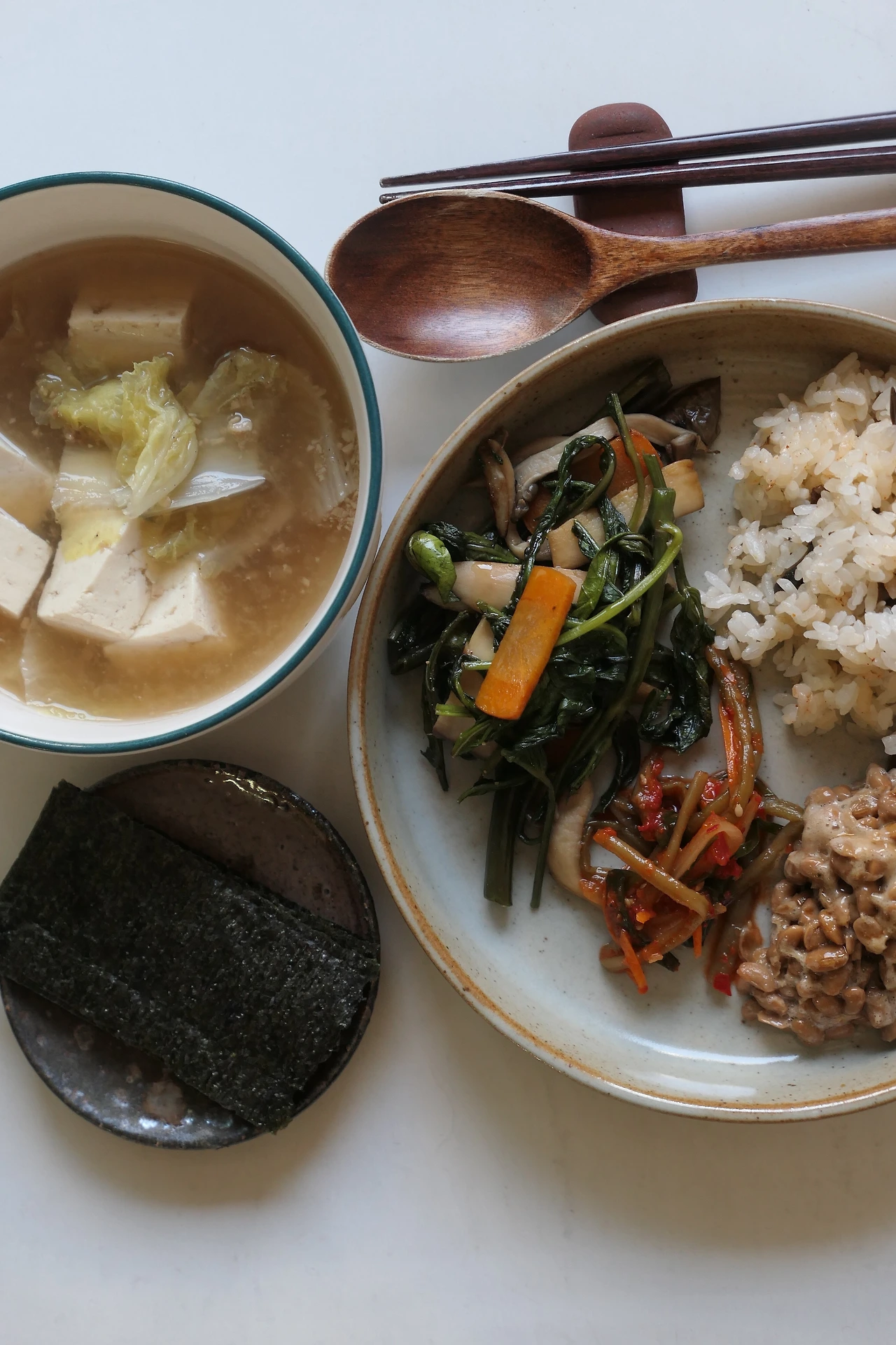 내가 제일 만족하는 밥상은 내가 차린 밥상이다. (참고로 '맛있는'이라고는 안 했다.) 애정하는 질냄비에 밥을 하고 계절 채소 하나로 국물 맛을 우려 또각또각 자른 두부를 넣고 마지막에 된장을 살짝 푼다. 냉장고에서 바로 꺼내 담는 김치 하나와 그때그때 있는 채소를 볶거나 쪄서 만든 반찬같은 것들 한두가지라면 충분한 밥상이 된다. 고슬고슬 뜨끈한 밥을 먹을 때는 만족스러운 나머지 희열까지 느껴진다. 구수하고 짭짤한 된장국은 몸을 데워주어 힘이 나거나 피로가 풀린다. 때에 난 채소는 우리에게 필요하다고 하지 않는가. 가짓수가 적으니 하나하나 집중해 먹을 수 있어 식사의 밀도가 높아진다. 무엇보다 내가 원하는 양을 담고 남기지 않고 먹을 수 있다.