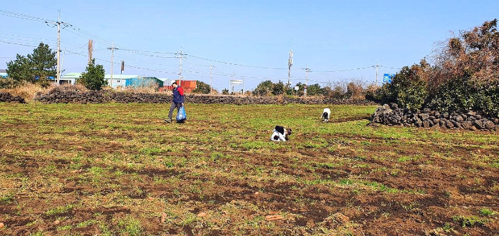 당근 수확을 마친 밭에 남은 당근은 우리 몫이다. 육지에서 코로나가 기승을 부릴 때에도 제주에선 나눔이 우선이다. 제주는 청정하고 안전하다는 모종의 공동체 의식이 있었다.