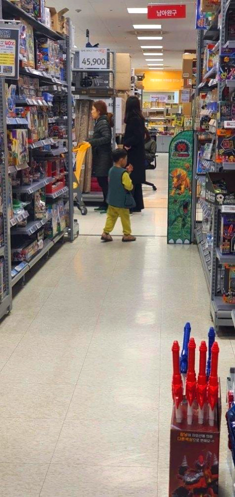 먹이를 찾는 하이에나. 장난감 코너에서 그의 눈빛은 번뜩인다. 하나라도 놓질 새라 꼼꼼히 먹잇감이 될 표적을 스캔한다. 희망고문을 주지 않으려 시간을 버는 대신 지갑은 가벼워진다.