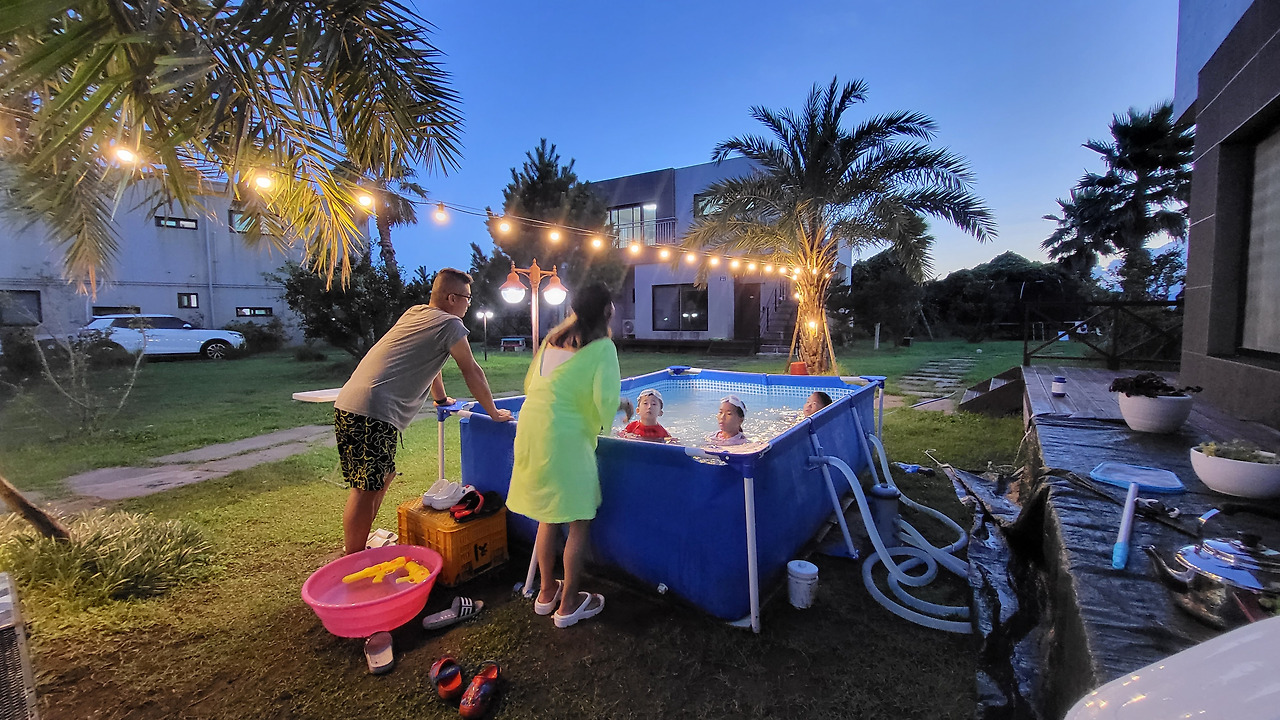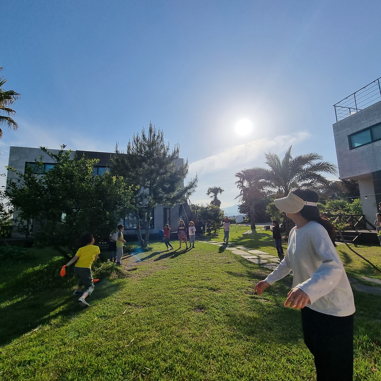 지금 우리 마을에는 무려 12명의 아이들이 함께 살고 있다. 어린이집을 다니는 어린아이 2명을 제외하면 10명이 모두 같은 학교를 다니고 아침 스쿨버스를 타러 가는 풍경부터가 너무나도 정겹다. 방과 후에는 매일이 운동회다. 너른 공간에서 아이들은 마음껏 웃고 마음껏 떠든다. 그렇게 정신없이 아이들이 놀고 있으면 부모들은 아이들의 놀이를 방해하고 싶지 않아 집으로 들어와 저녁 먹기를 권유하기보다 주섬 주섬 저마다 집에 있는 것들을 꺼내기 시작한다. 그러다가 어느 한 집에서 불을 피우면 모두가 그 집 마당에 모여 팟럭이 시작된다. 매일 지글지글 불판에 고기가 구워지고, 9첩 진수성찬이 차려지며, 밥 좀 먹어라 잔소리를 하지 않아도 알아서 꿀떡꿀떡 넘기는 아이들을 보며 이곳에 천국이구나 싶다. 그런 아이들인지라 생각도 마음도 신체도 쑥쑥 자라난다. 아이들 역시 학교 이외의 공동체에서 다양한 연령대, 다양한 배경을 배우고 성장한다. 춤추고 노래하며 마음껏 떠들어도 그 누가 뭐라고 하지 않는다. 층간 소음도 없고 주차난도 없다. 부모들은 그 사이 저마다 손에 마실 것들도 챙겨 온다. 술을 좋아하는 부모는 적당한 반주를 즐기고, 술을 마시지 않는 부모라면 가져온 음료수로 낭만에 취한다. 즉흥적인 모임에서 격식도 없고, 규칙도 없다. 그저 각자가 원하는 만큼 즐기고 행복하고 나누면 그만이다. 여유 넘치는 부모들이 모인 이곳이 낙원이다. 옆 타운 하우스에서 이사하자마자 주차문제로 서로 다퉈서 그 이후로는 아예 얼굴도 보지 않고 마당을 사용하지도 않으며, 담을 짓고 살다가 결국 제주 살이가 안 맞다며 육지로 떠나간 사람들 이야기도 들린다. 아이들이 읽는 동화 중에 거인의 정원이라는 동화가 있다. 아름다운 정원을 혼자 독차지하려는 거인 때문에 정원에 찾아오는 이가 없어진다. 새도 동물도 오지 않으면서 정원의 식물들은 죽어간다. 아름다운 공간을 독차지하면 그 공간은 죽은 곳이 된다. 공간은 늘 열려 있어야 하고 연결되어 있어야 한다. 코로나19와 같은 상황에서도 공간은 늘 열려 있을 수 있는 곳이 바로 이런 마을이었다.