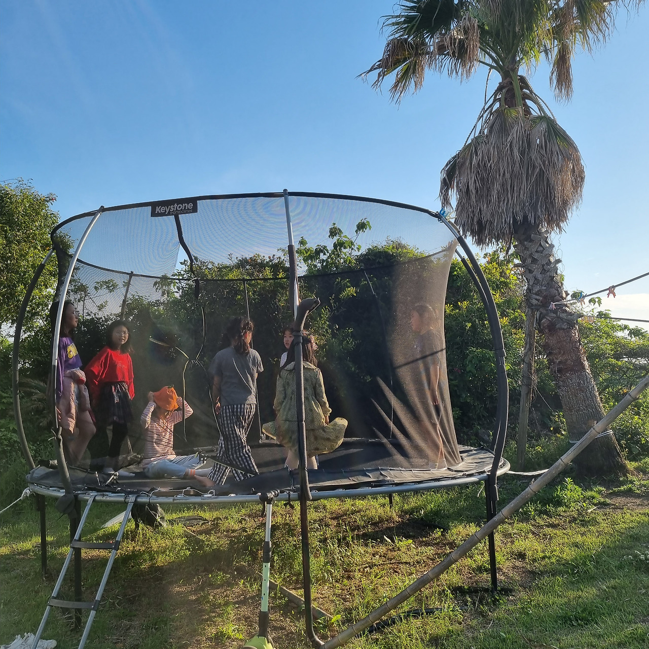너른 마당, 대형 트램폴린, 매일 열리는 축제, 아이들을 위해 진심으로 놀아주는 부모들. 아이들에게 좋은 것은 부모들에게도 좋다. 지상 낙원은 이런 풍경을 놓고 말하는 것이 아닐까