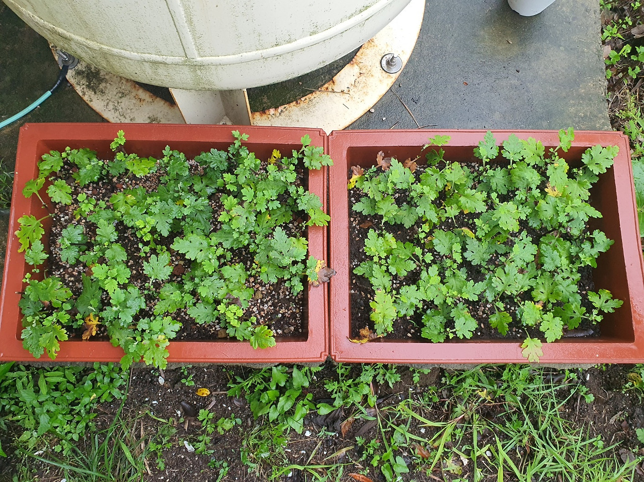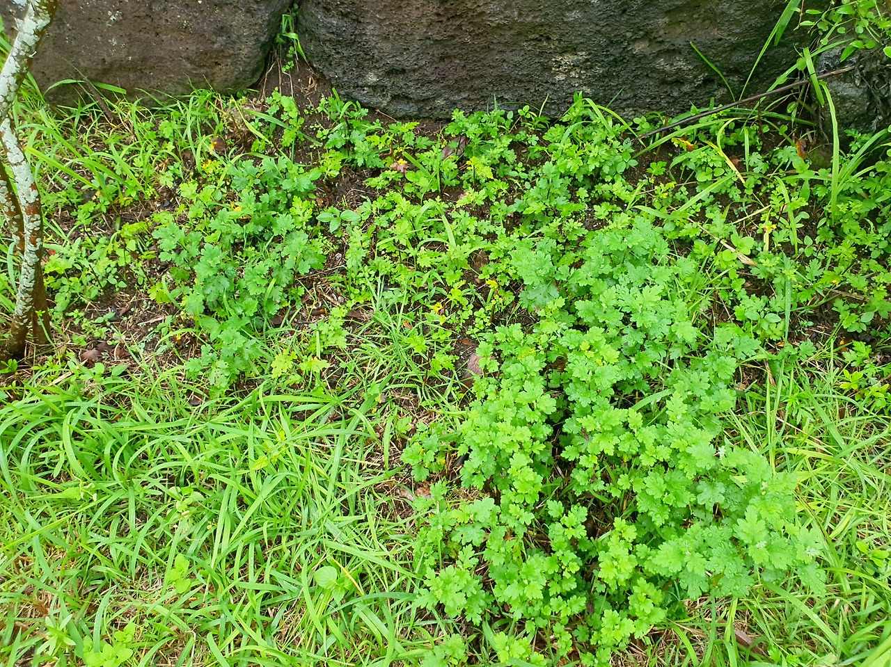 텃밭 가득히 자라난 부추. 부추는 물만 주면 계속 잘라먹을 수 있다. 시장에서 파는 잘린 부추는 생명력을 잃었지만 텃밭의 부추는 성장하는 살아있는 부추다.