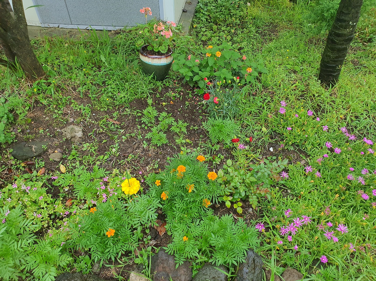 처음엔 눈에 보이는 한두 가지 종류 꽃이 이제는 십 수 가지가 넘는다. 로즈마리 같은 허브까지 키워내신다. 산수국, 치자나무, 애니시다, 란타나 등으로 뒤덮일 내년이 기대된다.