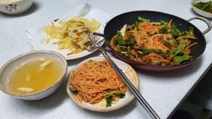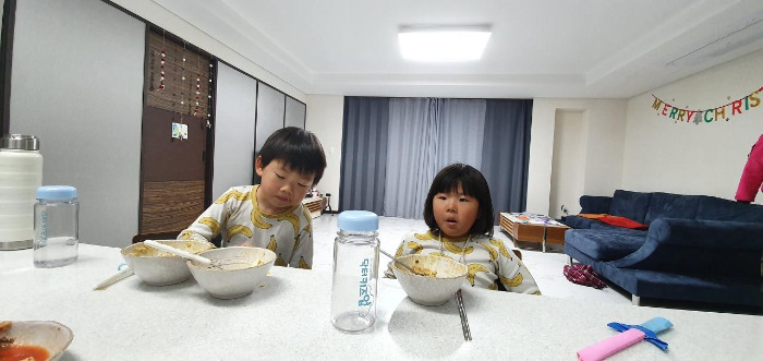 우리 엄마에겐 레퍼토리가 있다. 요약하자면 내가 어릴 적 입이 짧아 정말 안 먹었고 그래서 맨날 숟가락을 들고 다니며 먹여야 했고 그런데 갑자기 중학생 때 밥 더 주라고 해서 놀랐고 지금의 키로 자라게 돼서 뿌듯하다는 거다. 아마 이 세상 엄마들은 모두 자식들이 잘 먹어주면 하는 바람이 있을 것이다. 군 생활을 14년 한 나는 안 먹으면 굶기고 배고플 때 밥을 주는 게 편하다고 생각한다. 하지만 엄마들은 삼시 세끼 먹여야 마음이 편하다. 아내도 그렇기에 육지에 있을 때 나름 5대 영양소를 고려하여 잘 챙겨줬음에도 아이들이 잘 안 먹어서 속상해했다. 제주도에 온 이래 아이들이 잘 먹는다. 쑥쑥 크는 게 눈에 보인다. 아마 이것은 더할 나위 없이 신선하고 맛 좋은 식재료와 '만개의 레시피' 덕분에 향상된 아내의 요리실력에 더해서 활동적으로 지낼 수 있는 환경이 한몫했으리라.