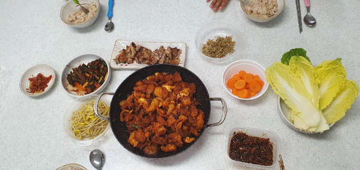 푸짐하고 맛있는 한 끼가 탄생한다. 오일장에서 구매한 파김치, 오징어젓갈도 그 맛이 일품이고, 제주산 돼지고기 앞다리살로 만든 제육볶음도 기가 막히다.