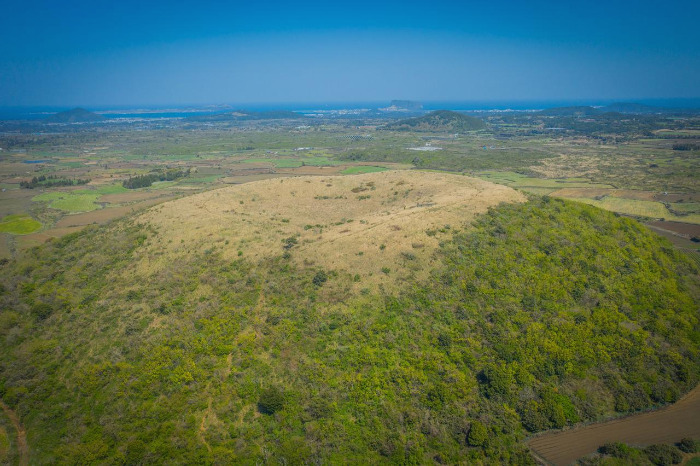 아끈다랑쉬오름 전경. 오름 정상에선 고사리를 따고 있는 어르신들을 흔하게 볼 수 있다. 특히나 싱싱하고 오동통한 고사리가 잔뜩 있어서 뜯을까 말까 고민하게 했던 아끈다랑쉬오름.