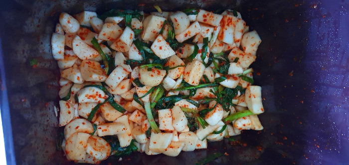 첫 수확, 첫 시도 우리의 작은 무 깍두기. 정말 너무나도 맛있어서 밥과 이 깍두기만 있어도 삼시 세 끼가 해결됐다.