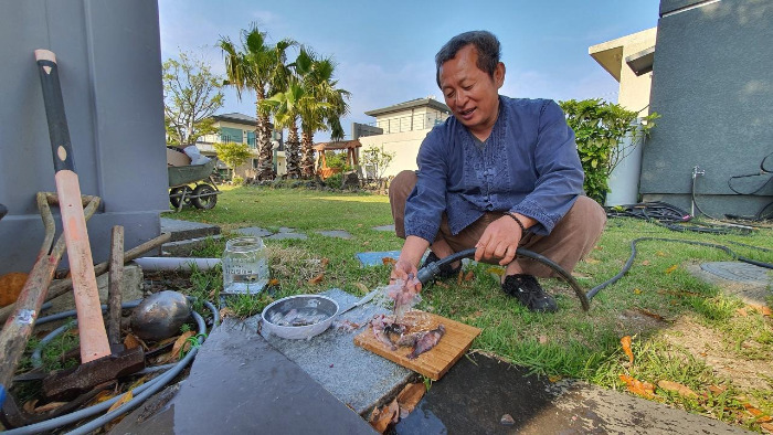 잔뜩 낚아 올린 물고기를 약 올리며 자랑한다. 하지만 또 그걸 다 손질해서 먹으라고 선뜻 주시니 밉지는 않다. 제주 인심은 츤데레 같다고나 할까.