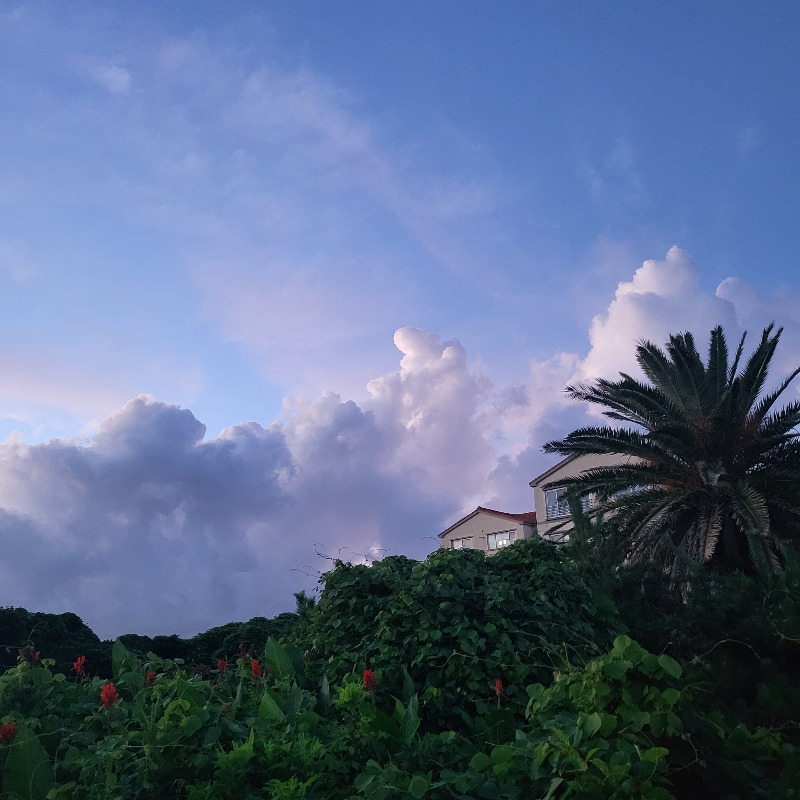 교회에 도착할 때쯤 되어선 찬란한 해가 제아무리 수줍게 그 빛을 숨기려 해도 숨길 수 없는 지경이 된다. 보랏빛의 하늘과 그 빛에 반사되어 같이 물든 구름이 조화롭다.