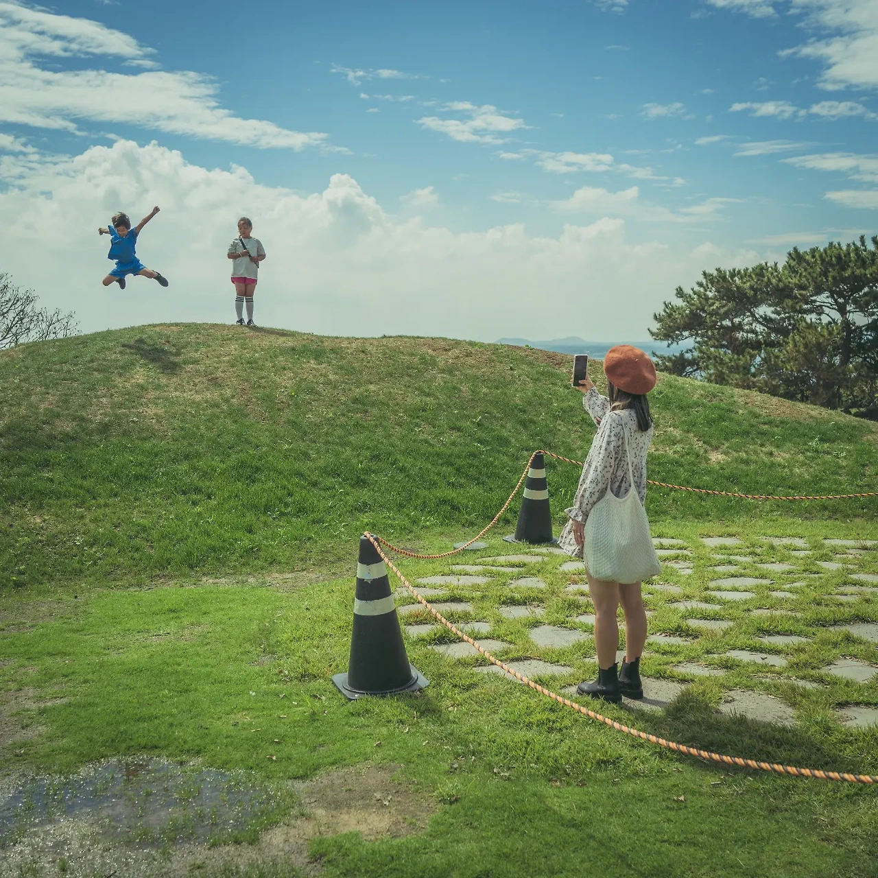 우도에 가니 아직 여름의 기운이 남아 뭉게구름도 더러 보인다. 푸르른 잔디와 파란 하늘 앞으로 기분좋게 뛰노는 아이들 모두 아직 여름이 아쉬워 보인다.